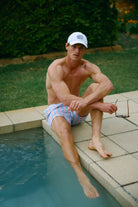 The Boardwalk Stripe Swim Shorts Mist Blue are the perfect addition to your summer wardrobe. Made from 100% Recycled Polyester, these mid-length shorts are quick-drying and lightweight. The elastic waistband with drawstring provides an adjustable fit, while internal fine mesh briefs provide extra comfort. Pair with one of our Linen shirts  for the perfect summer look.