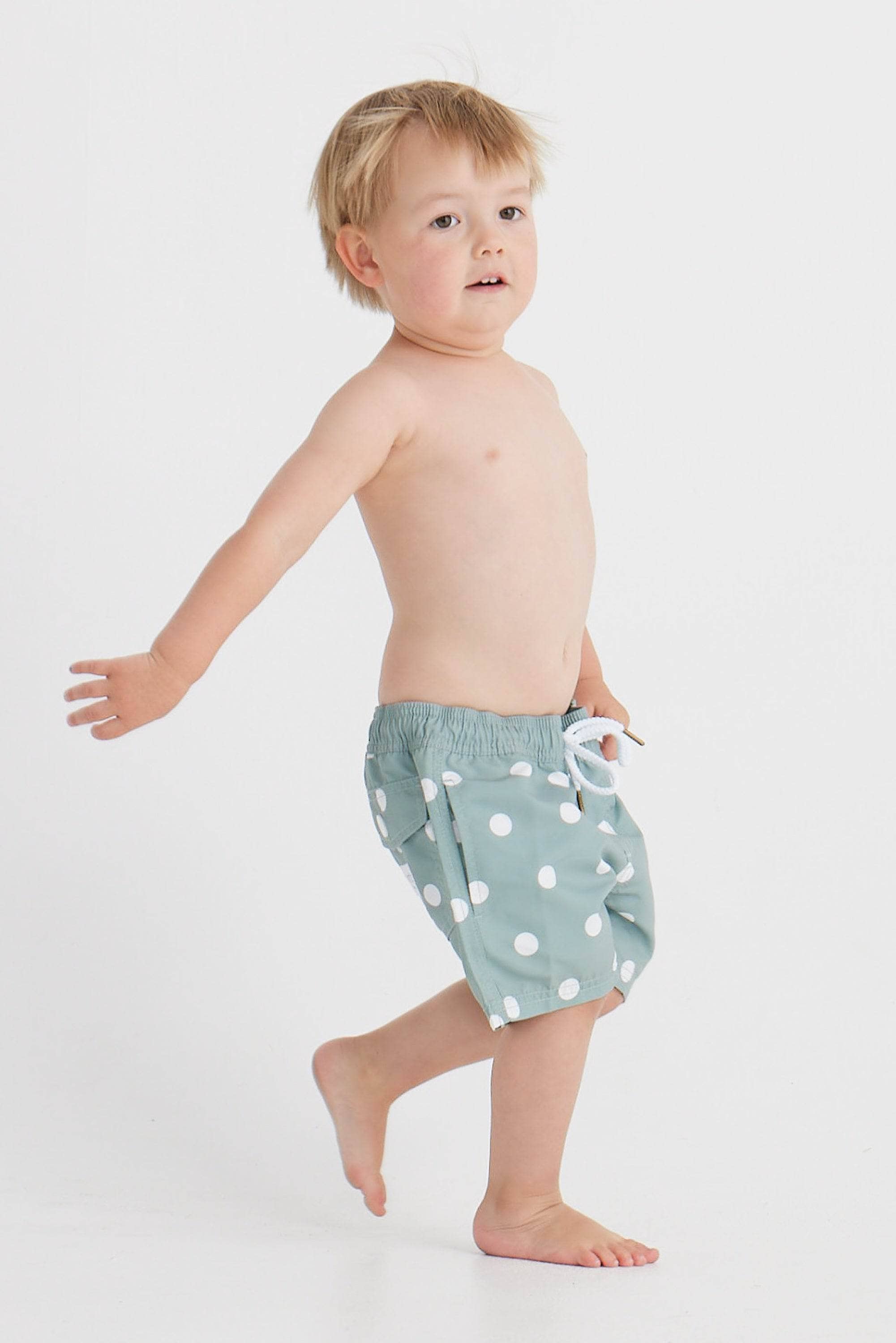 - Quick drying, mid-length swim shorts for children