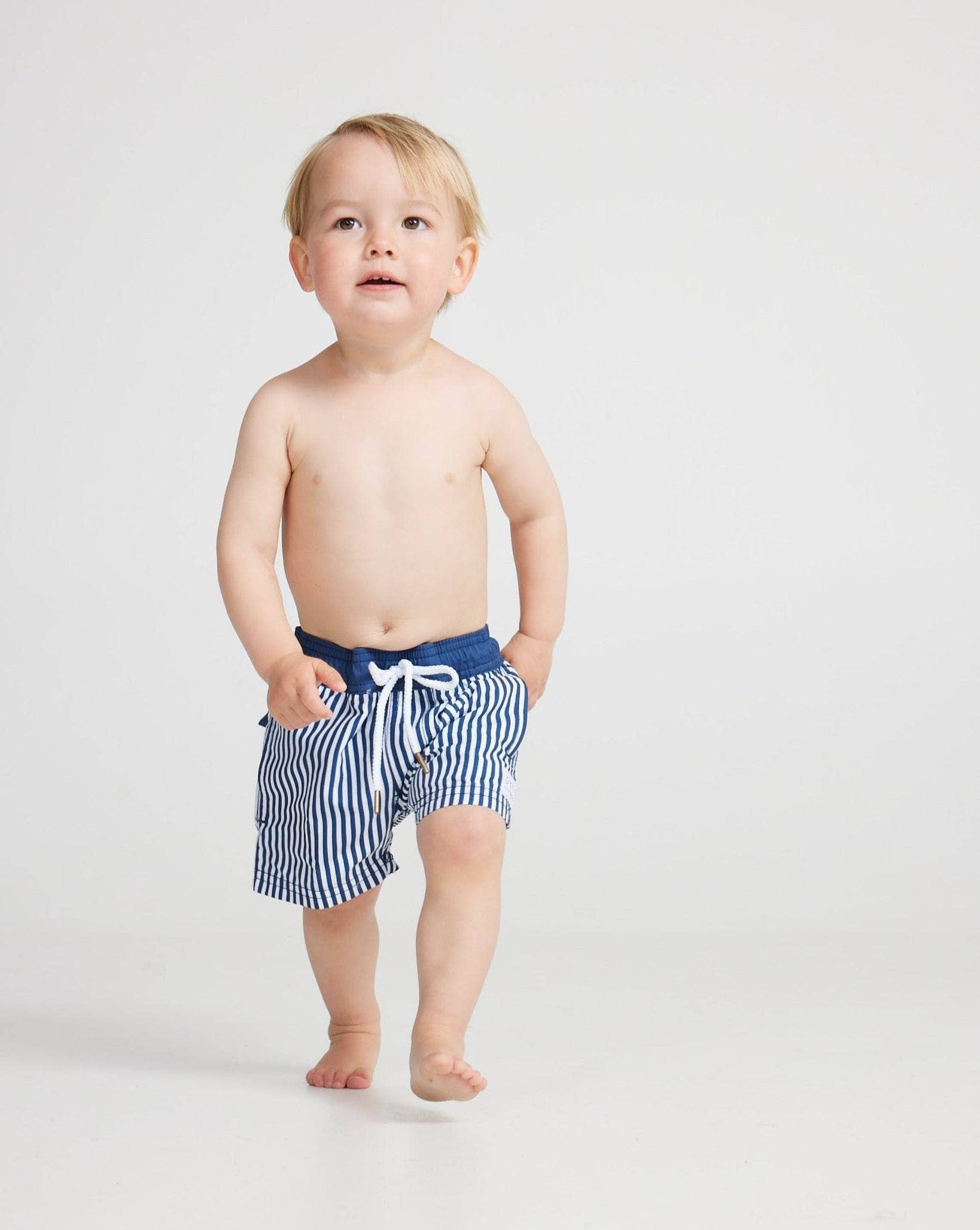 - Quick drying, mid-length swim shorts for children