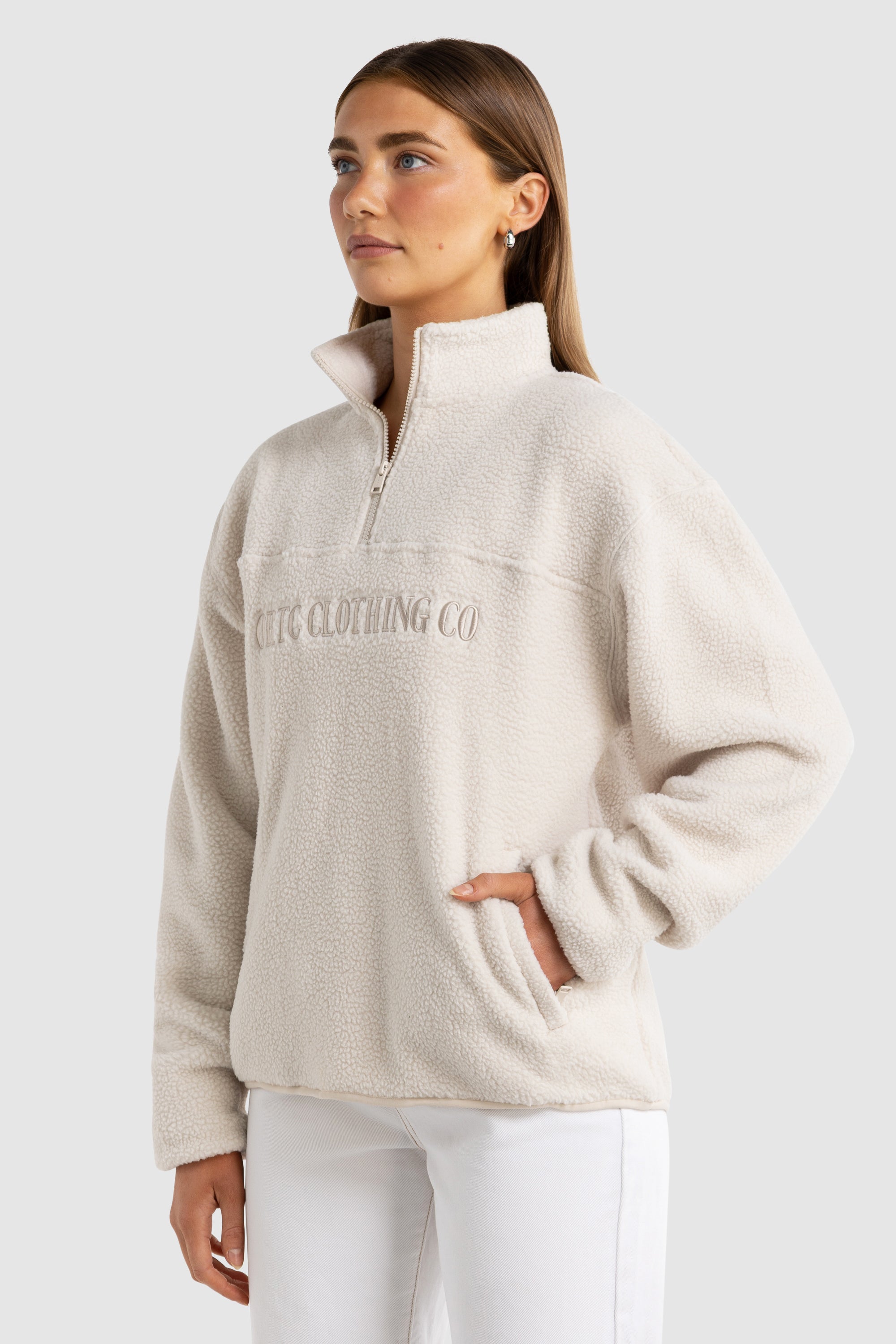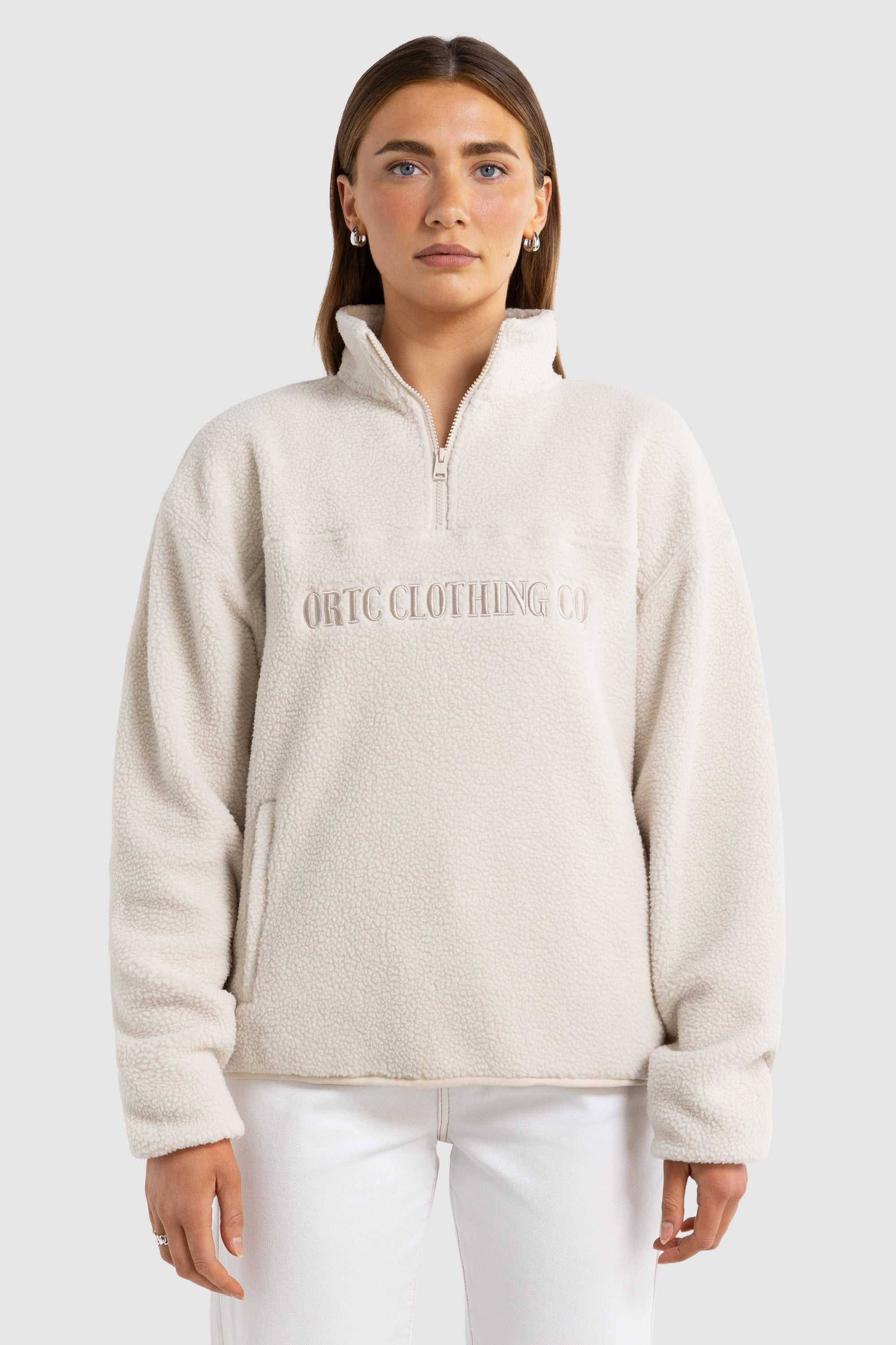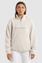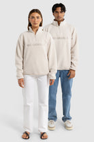 Unisex Sherpa Fleece Logo Quarter Zip Natural