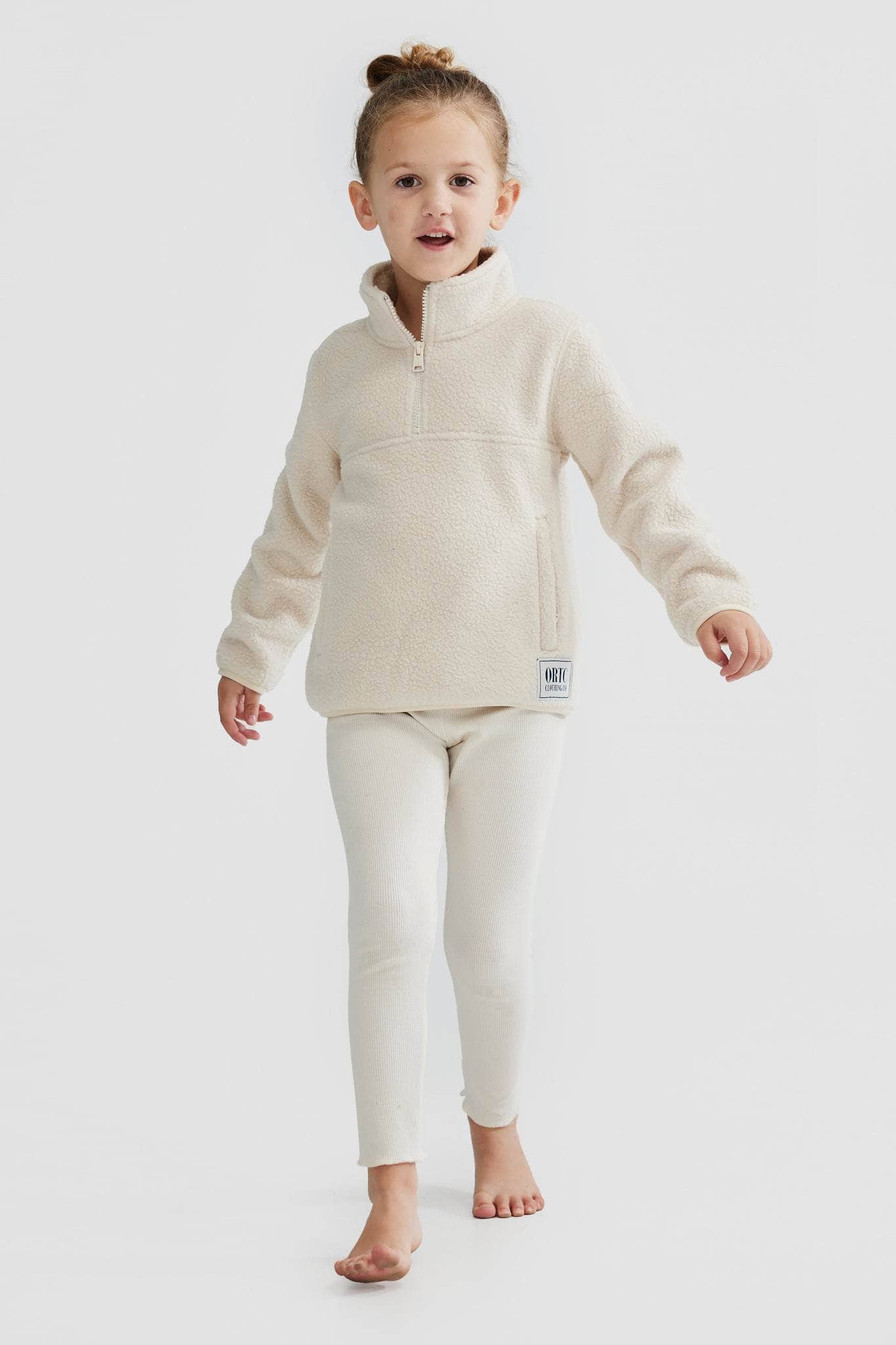 Match with your mini and keep warm in style with the Jnr Sherpa Fleece Quarter Zip Natural. Featuring a sherpa fleece shell with a cozy polar fleece internal lining, this cuddly quarter zip sweater comes with zip up side pockets and a woven label with the ORTC classic logo. This particular style runs small, we suggest sizing up.