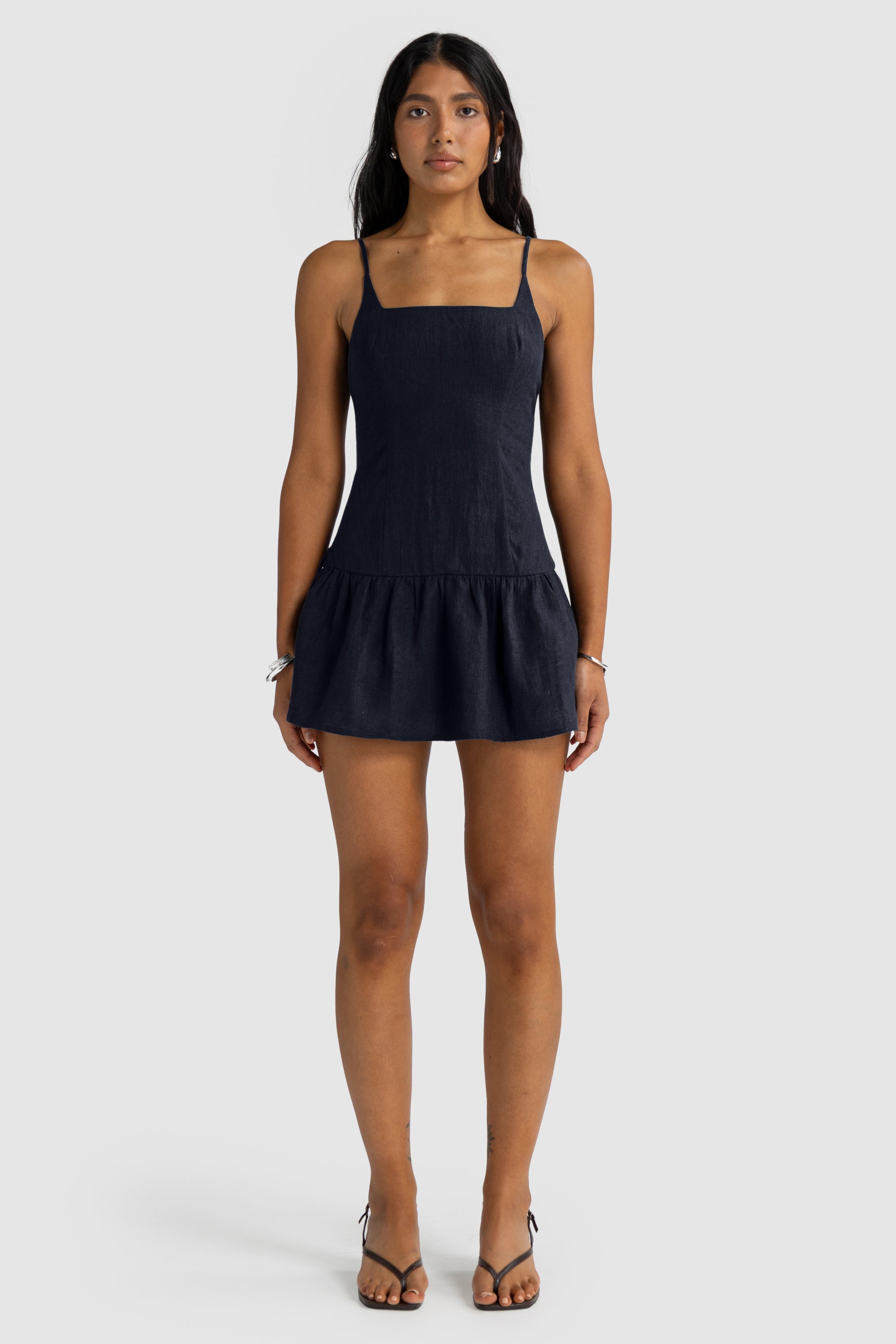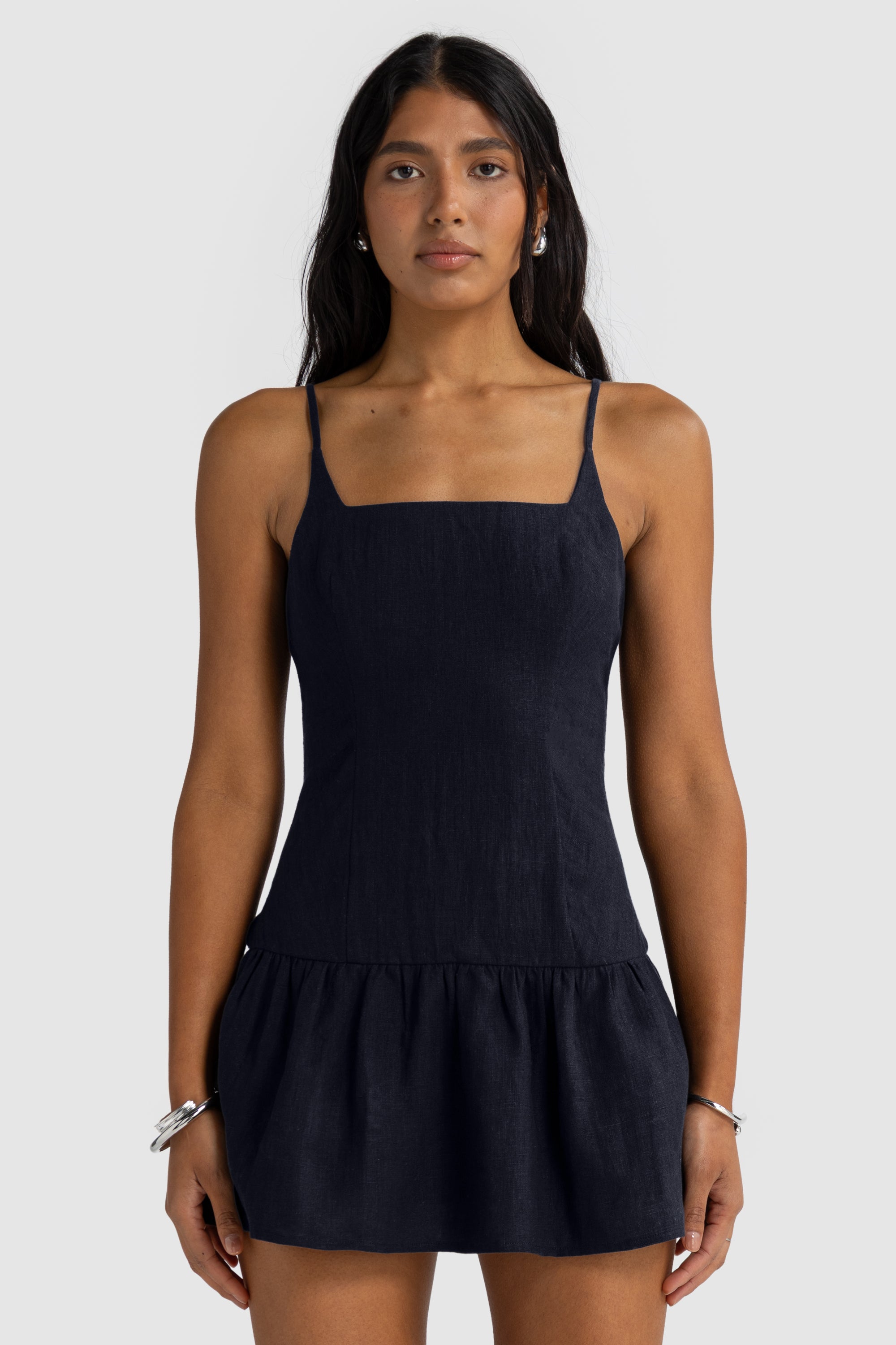 Chic and effortless, the Celine Linen Mini Dress is a timeless addition to your summer wardrobe. Made from 100% linen, it features a square neckline with delicate straps and a fitted bodice that falls into a softly gathered mini skirt. Designed for both comfort and style, this flattering silhouette transitions seamlessly from day to night. Pair it with slides for a laid-back look or elevate it with heels and simple jewellery.