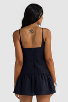 • Fitted bodice with gathered mini skirt
