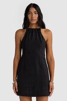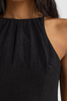 Jessie Linen Gathered Neck Dress Black