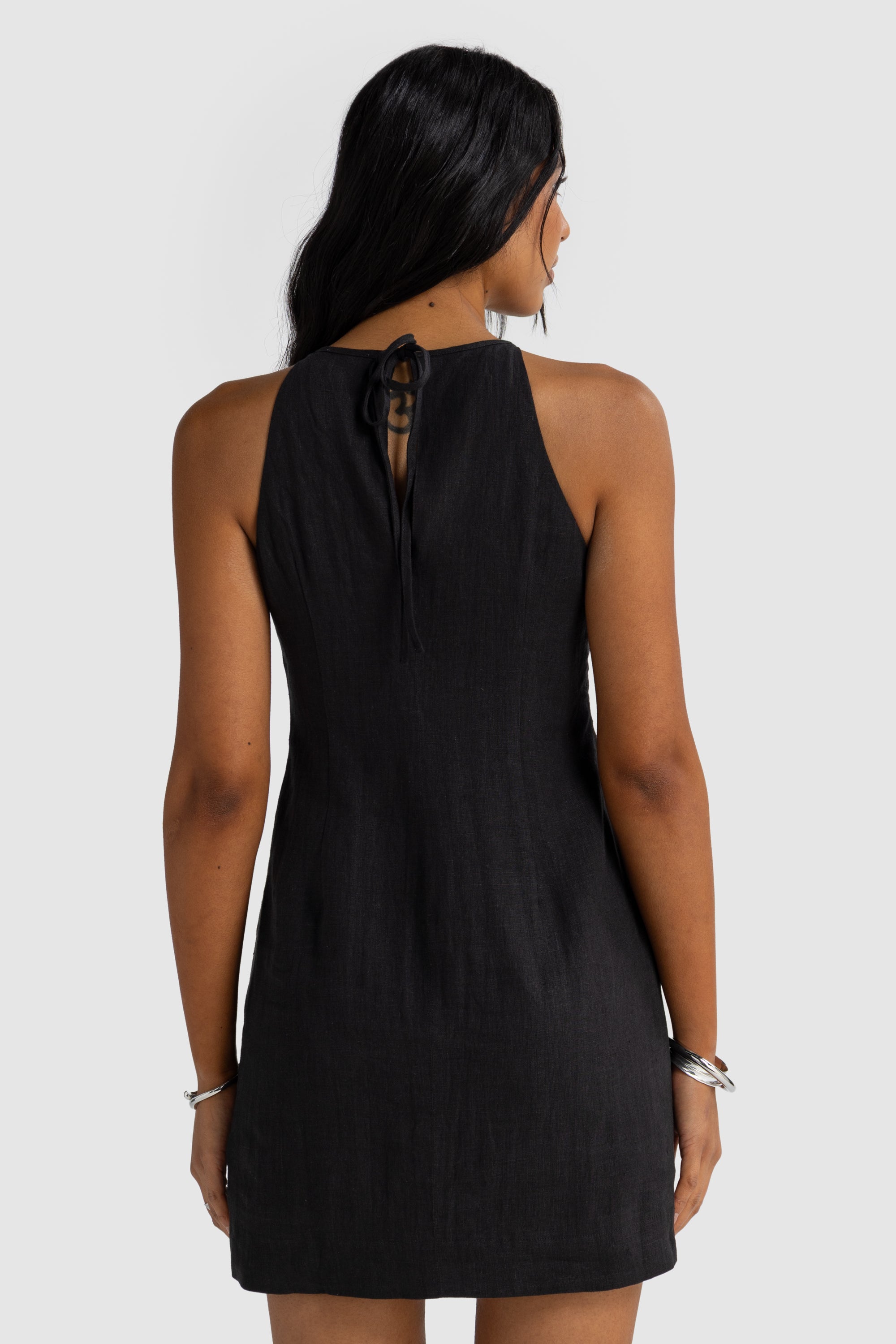 Effortless and elegant, the Jessie Linen Gathered Neck Mini is your go-to for easy summer sophistication. Crafted from 100% linen, it features a softly gathered neckline that flatters the silhouette and ties at the back for an adjustable fit. Subtle front panel stitching adds structure and a tailored finish. Perfect with sandals for a relaxed look or dressed up with heels and statement jewellery.
