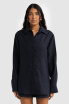 The Luna Linen Shirt Black is a staple for all wardrobes. Crafted from a mid weight linen and featuring side splits, this top is perfect to tuck. Best paired with the bottoms from our linen collection, denim range or by itself over swimwear.