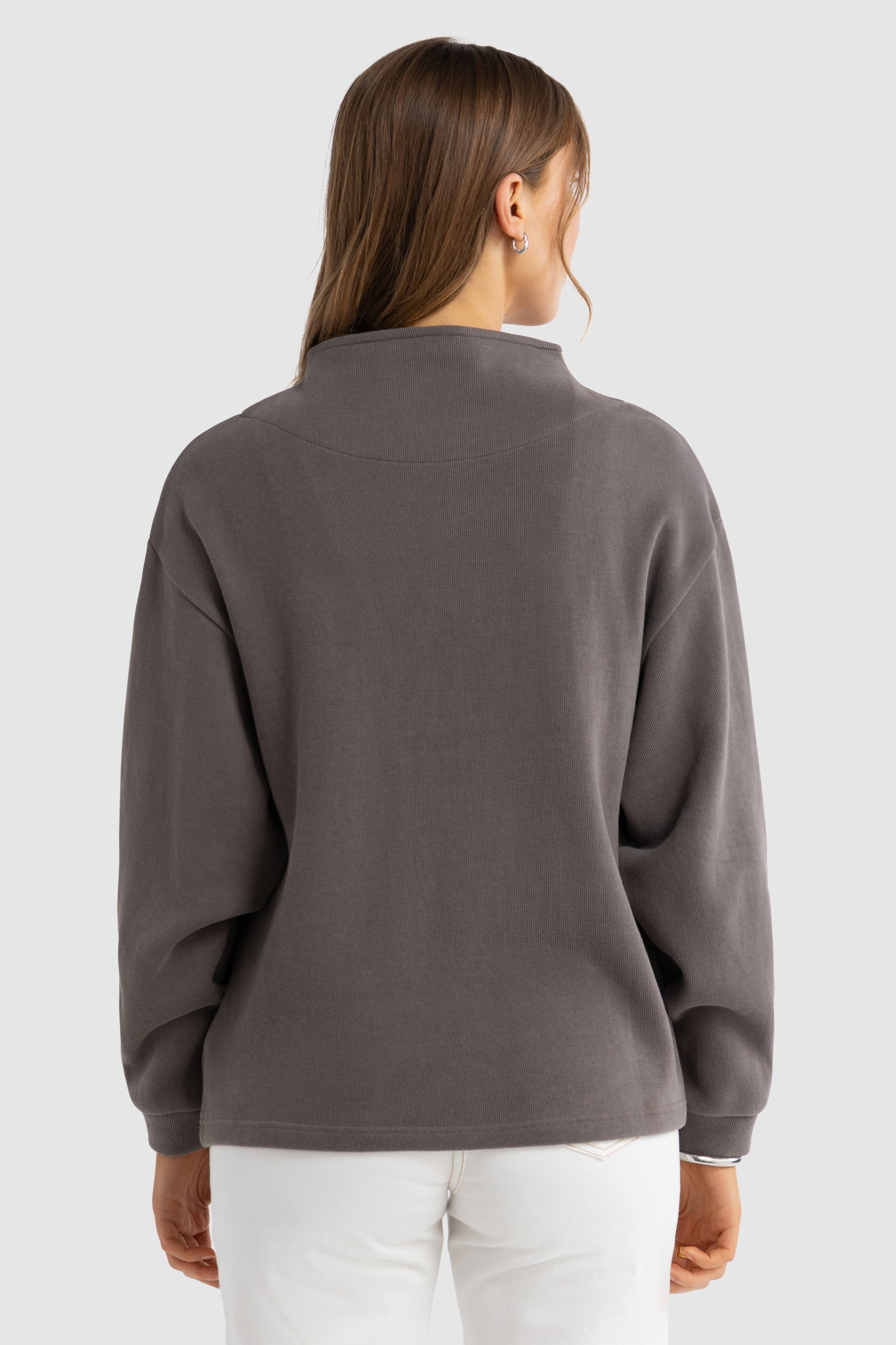 The Ava High Neck Ribbed Jumper is a premium grown-on neck sweater designed for comfort. This piece is crafted from high quality brushed cotton making is soft to touch and perfect for all day lounging.