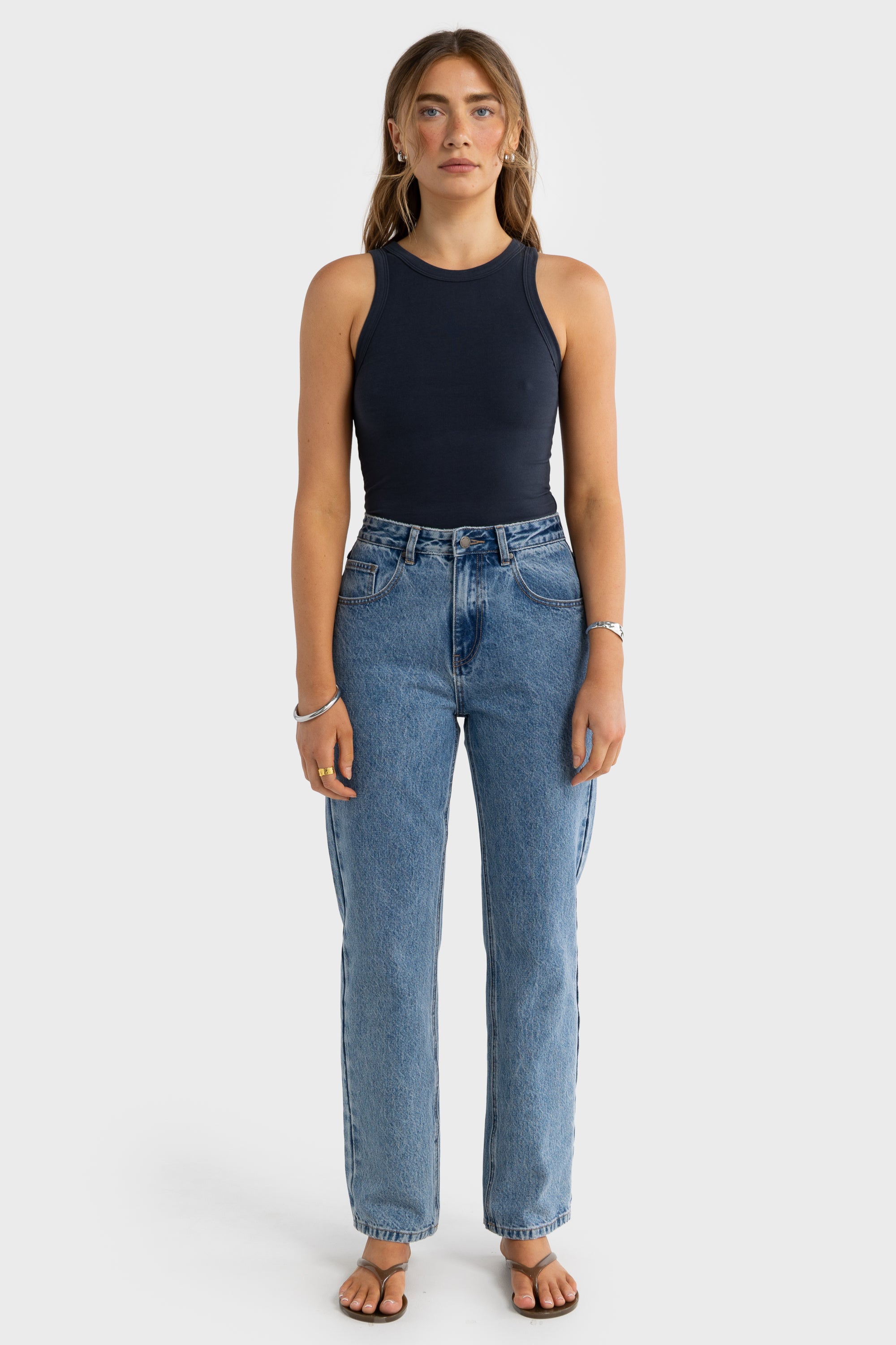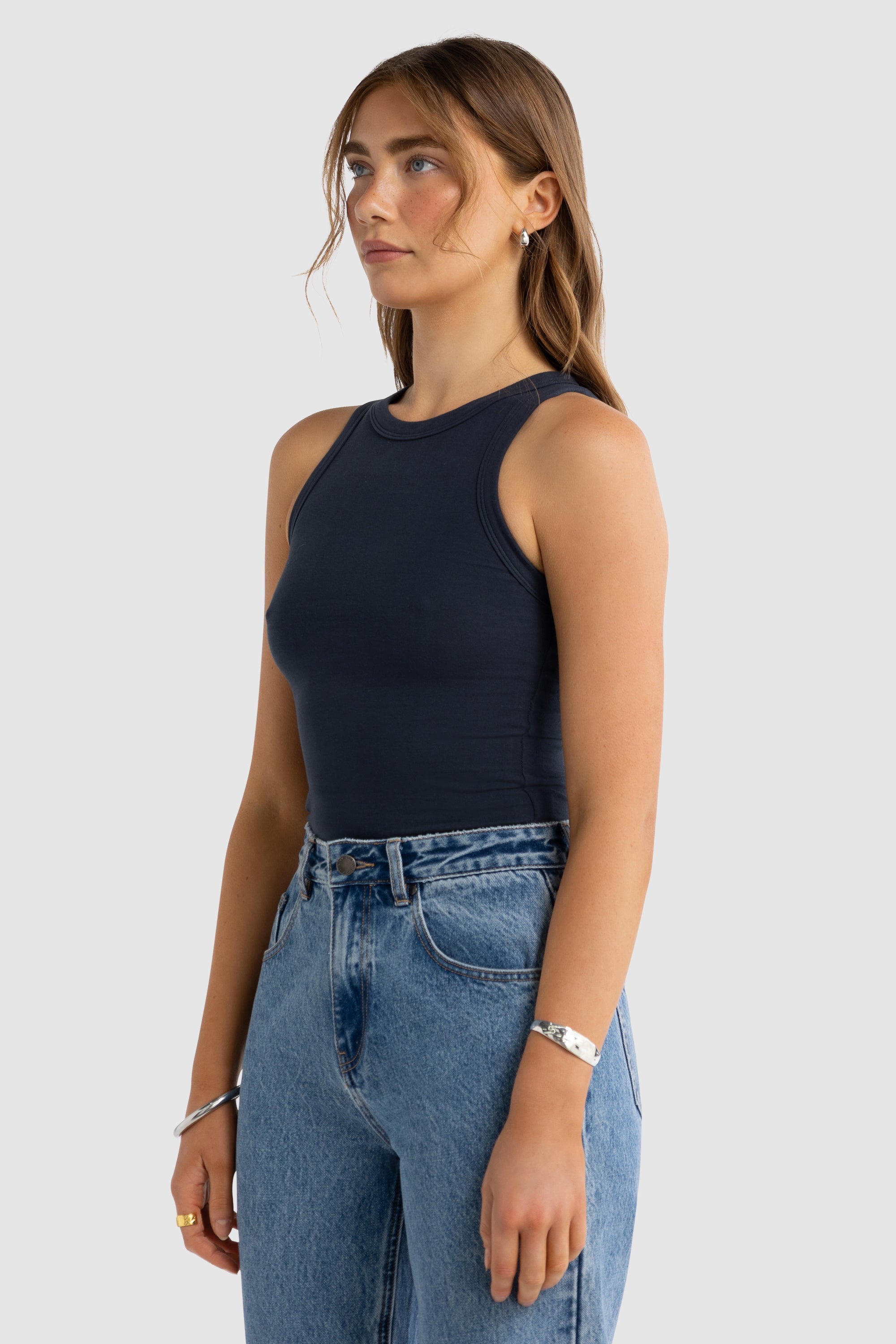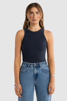 Evie Fitted Racerback Tank Navy