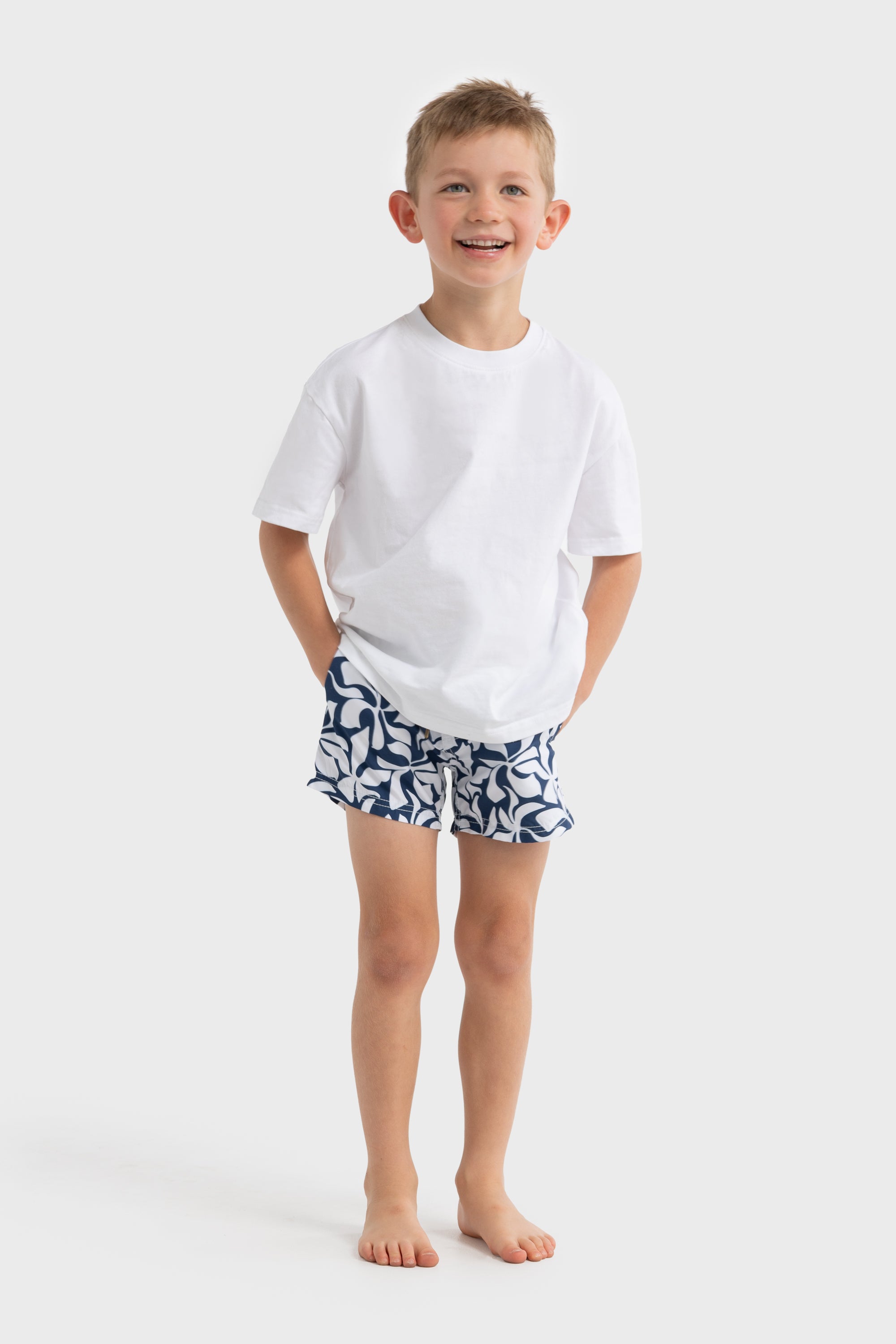 - Quick drying, mid-length swim shorts for children