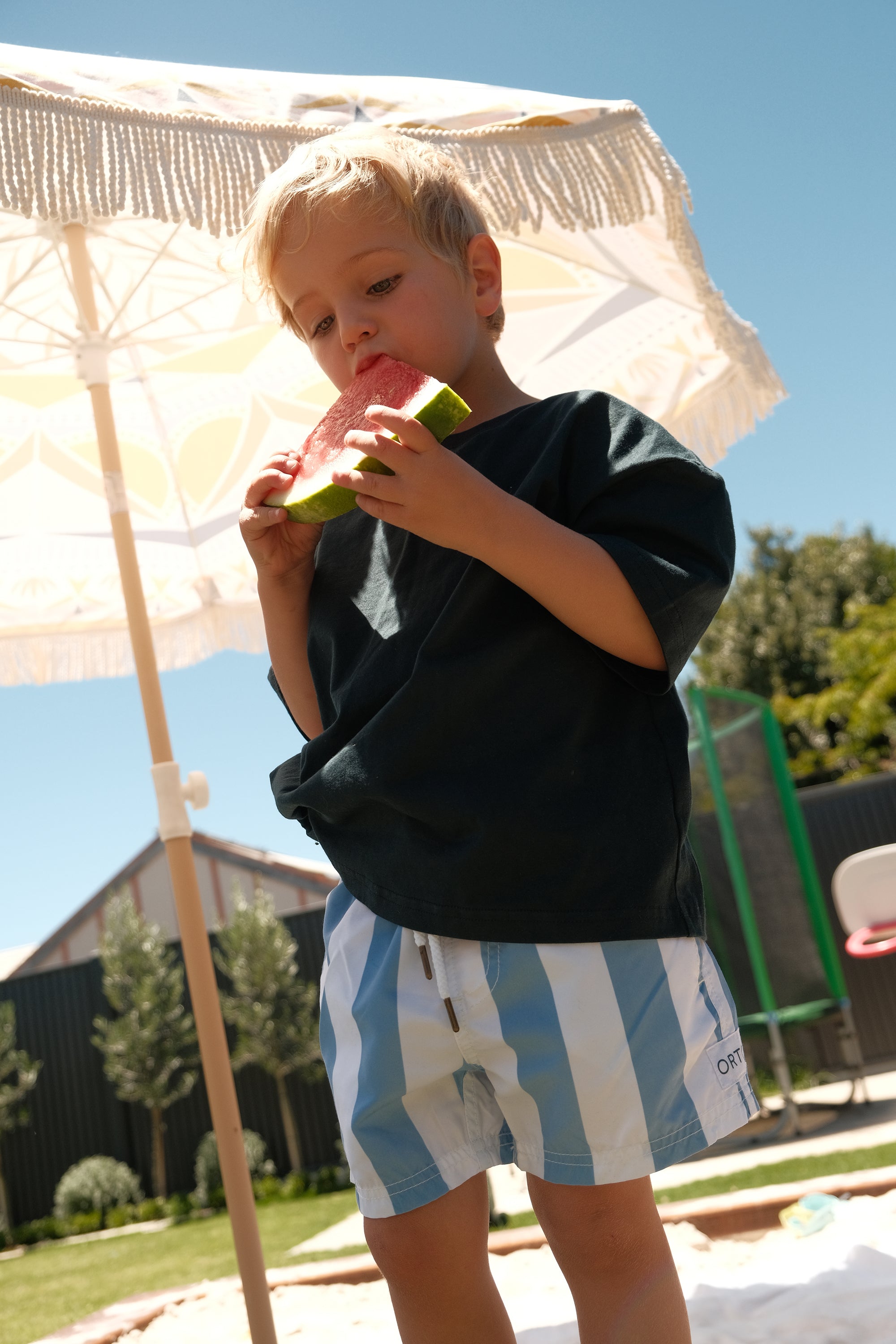 - Quick drying, mid-length swim shorts for children
