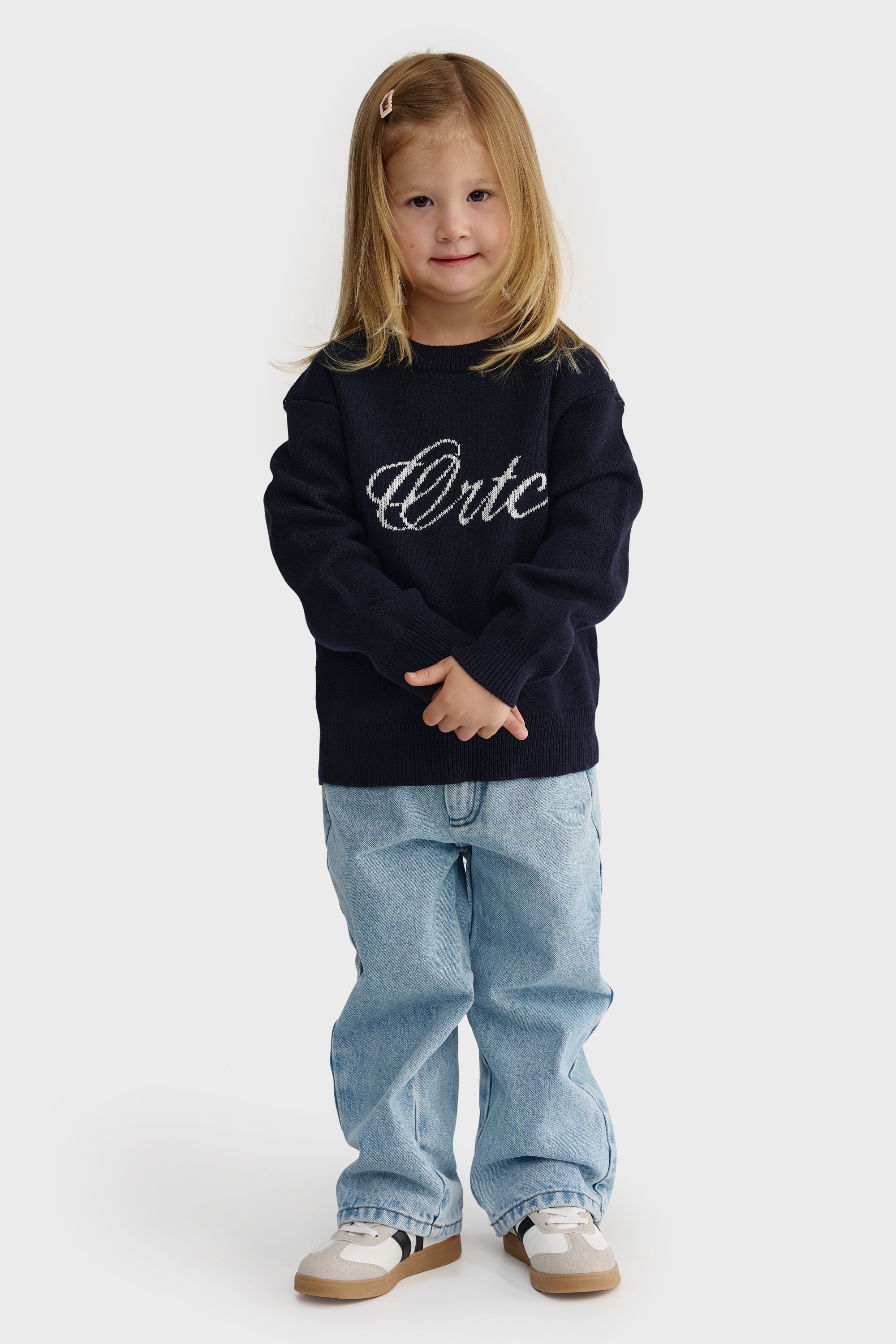 The Jnr Script Logo Knit Crew is designed for everyday comfort with a premium feel. Crafted from a soft cotton–cashmere blend, it’s breathable, and perfect for layering through the seasons. Featuring a relaxed fit with a drop shoulder, this knit offers an easy, oversized look. Finished with a bold ORTC script logo across the chest and ribbed trims, this is a piece that moves with them—keeping them warm, comfortable, and effortlessly styled