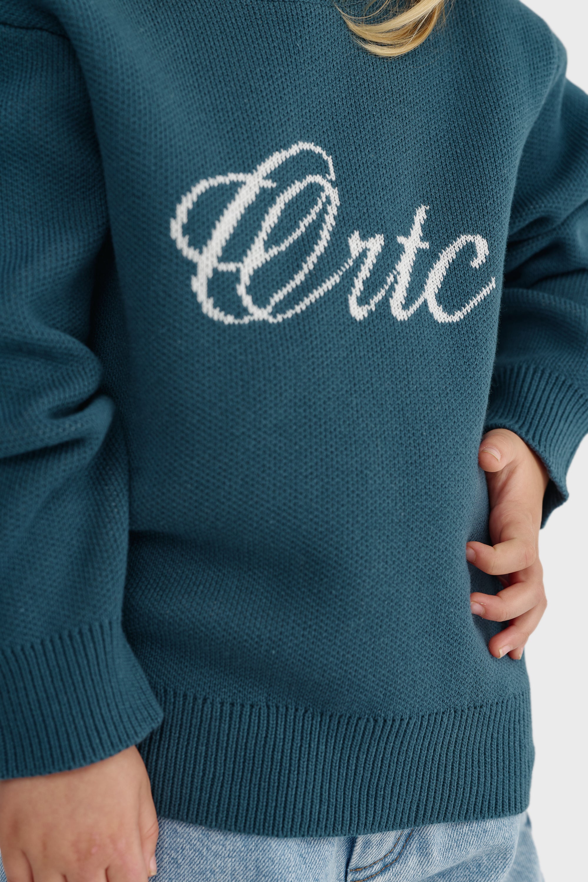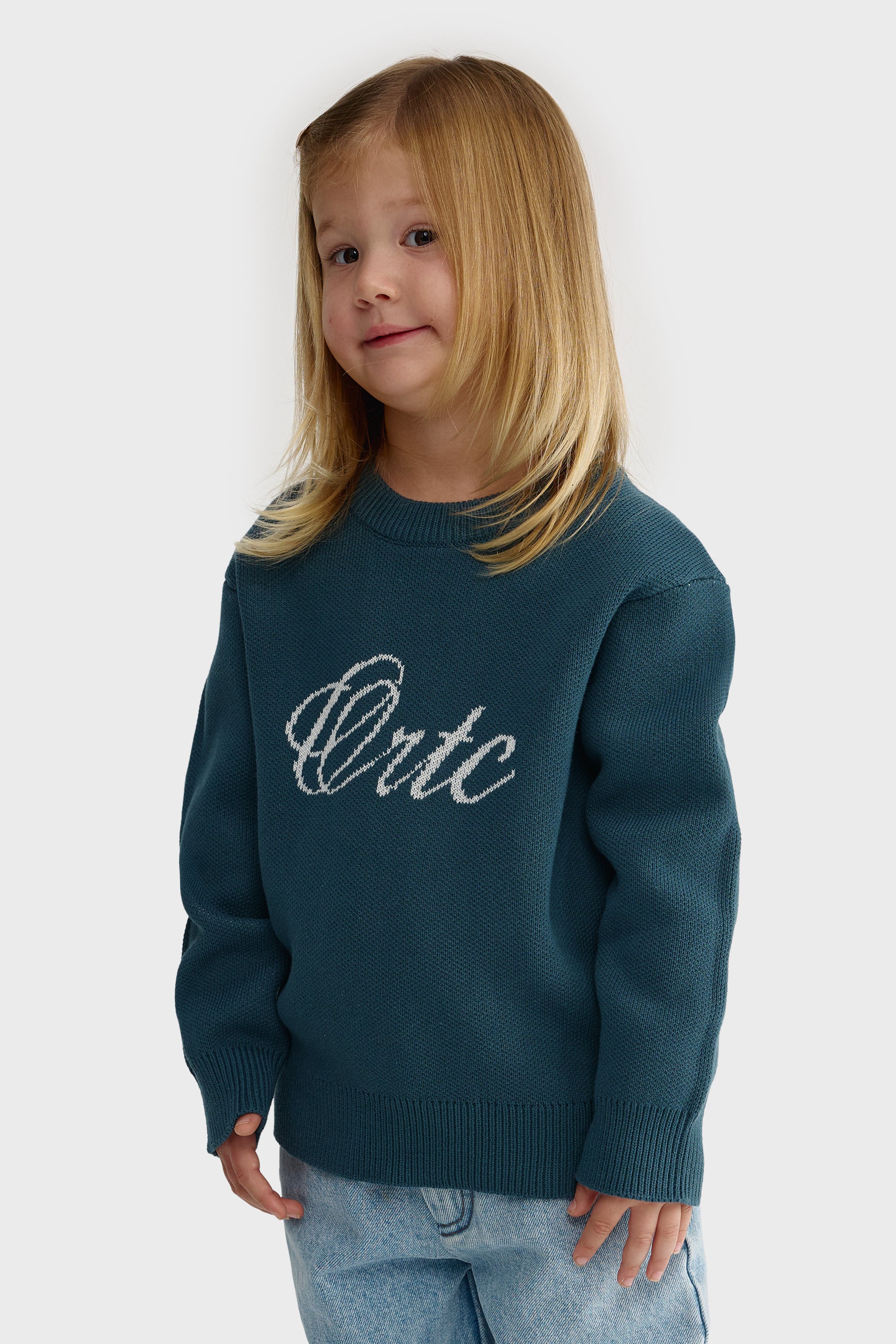 Jnr Script Logo Knit Crew Pacific