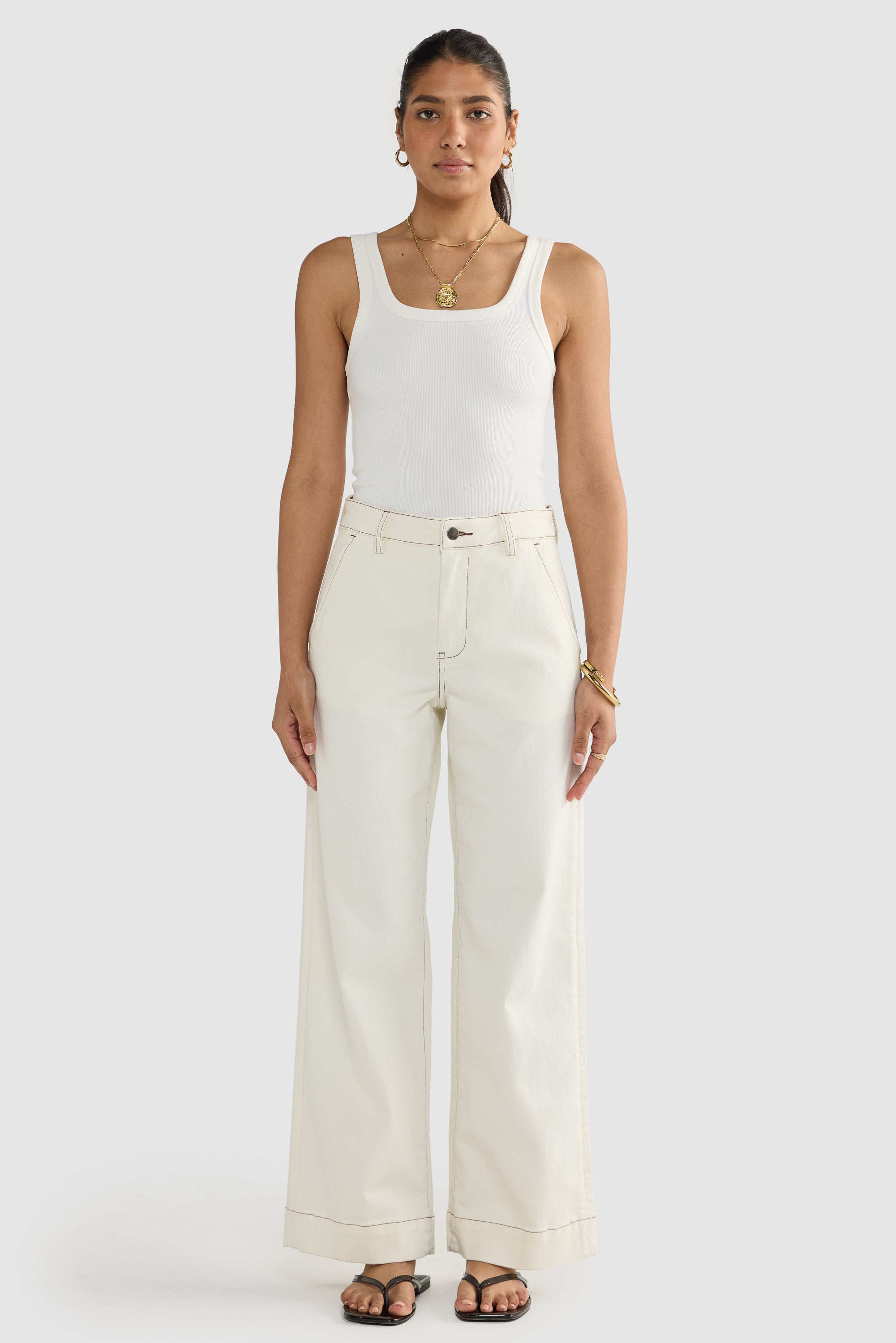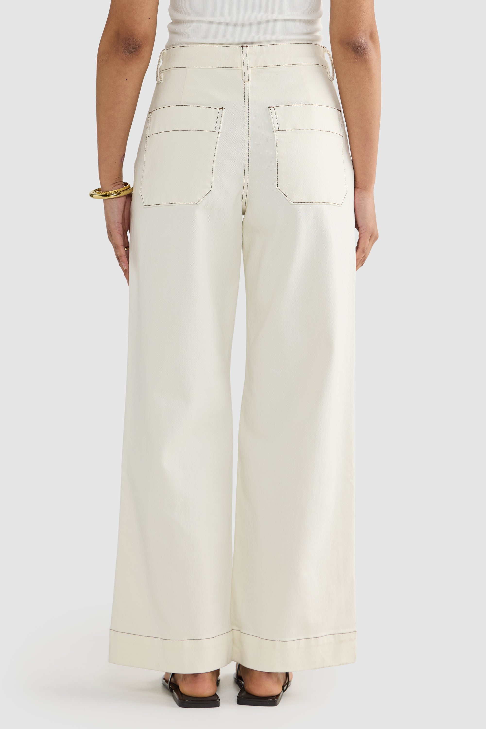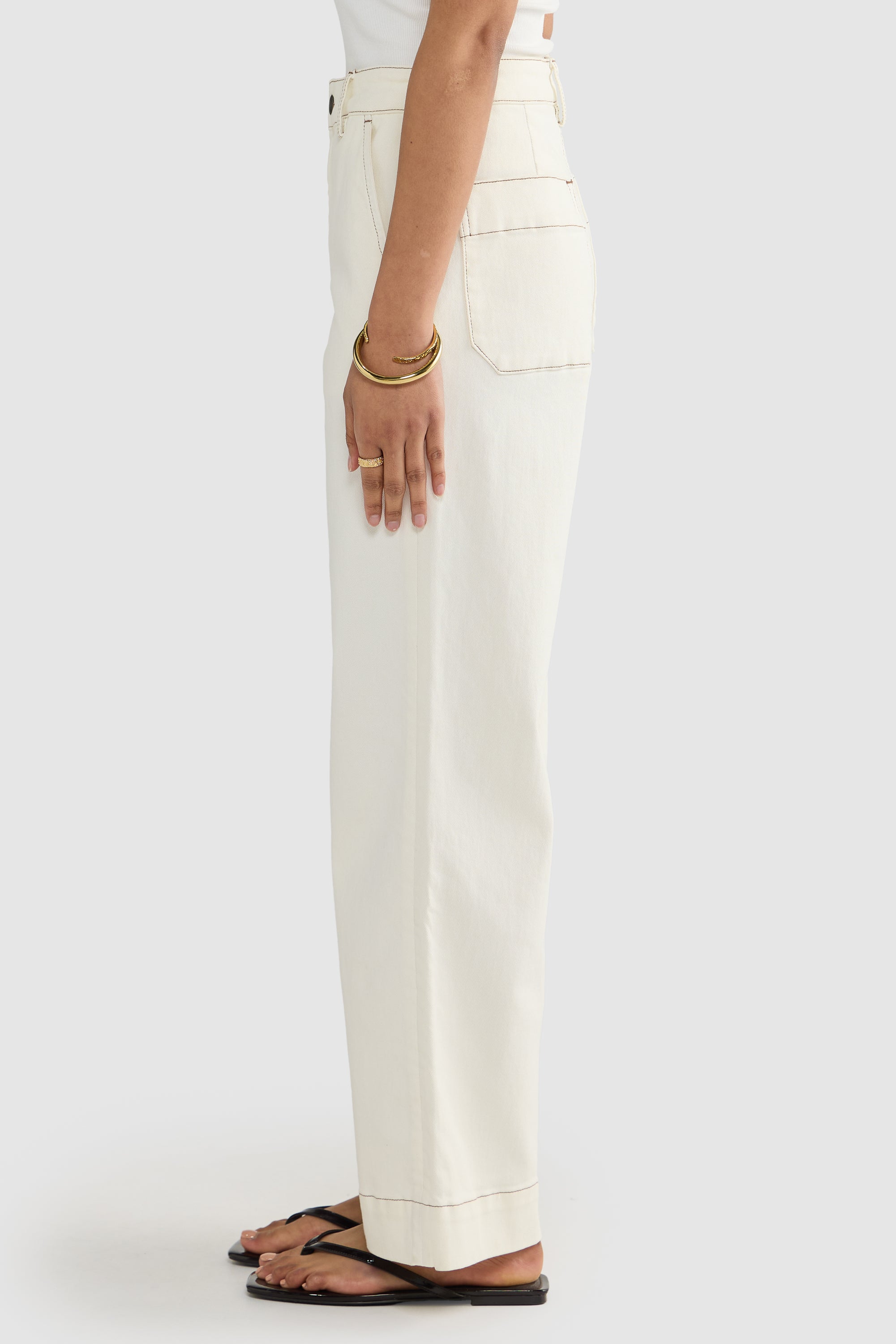 • Fitted waist with a wider leg profile