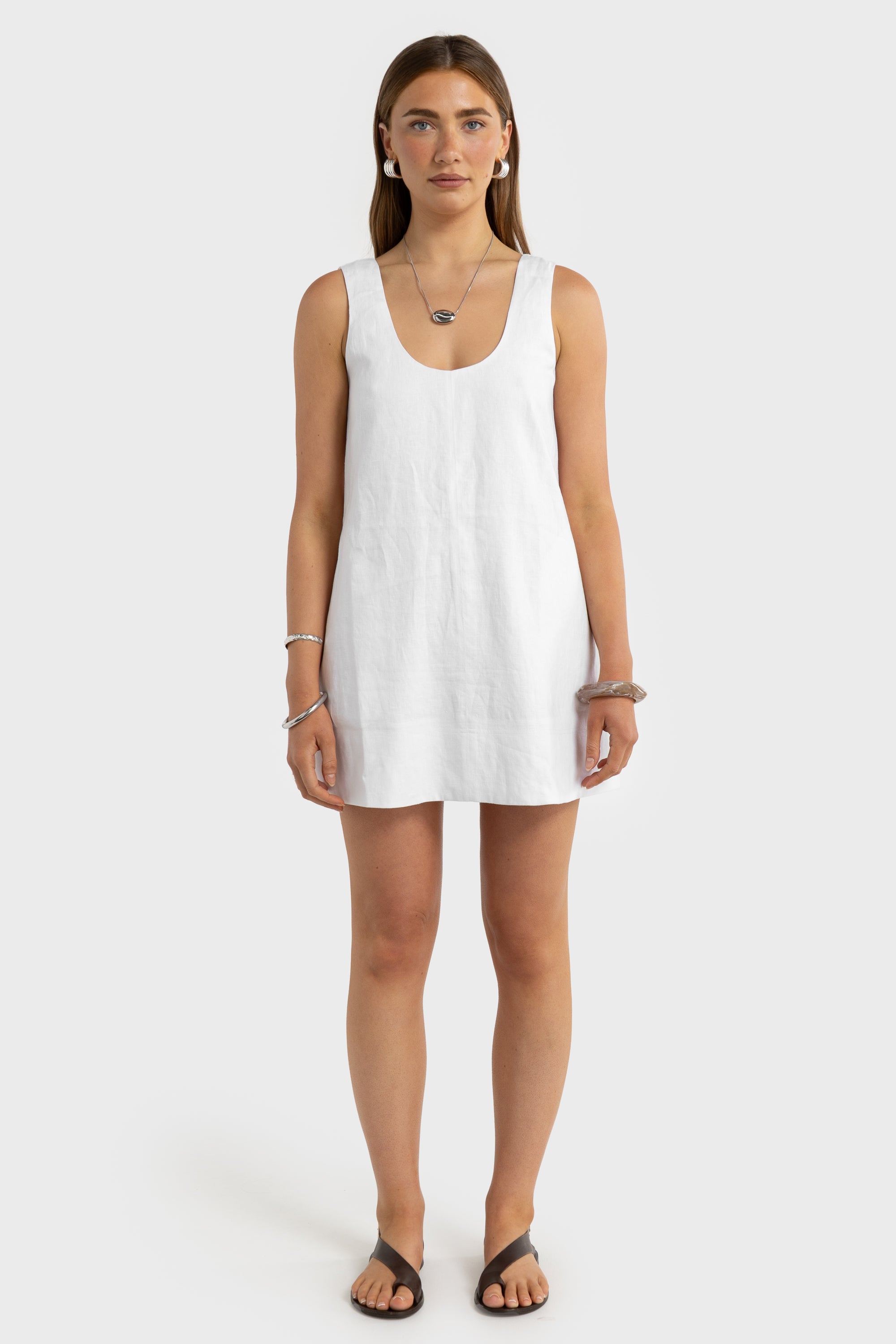 The Nora Linen Mini Dress is an effortless warm-weather staple, designed for relaxed, everyday wear. Offering a lightweight, breathable feel ideal for summer days, it’s cut in a relaxed mini silhouette for comfort and ease while maintaining a clean, feminine shape. Fully lined for coverage and bra friendly, it features a flattering scoop neckline and an easy fit through the body.