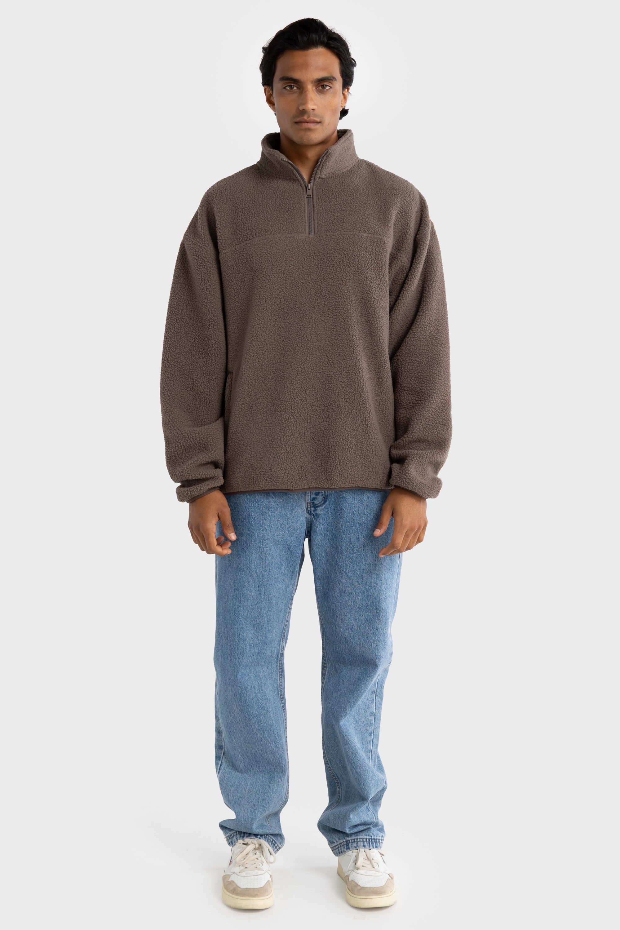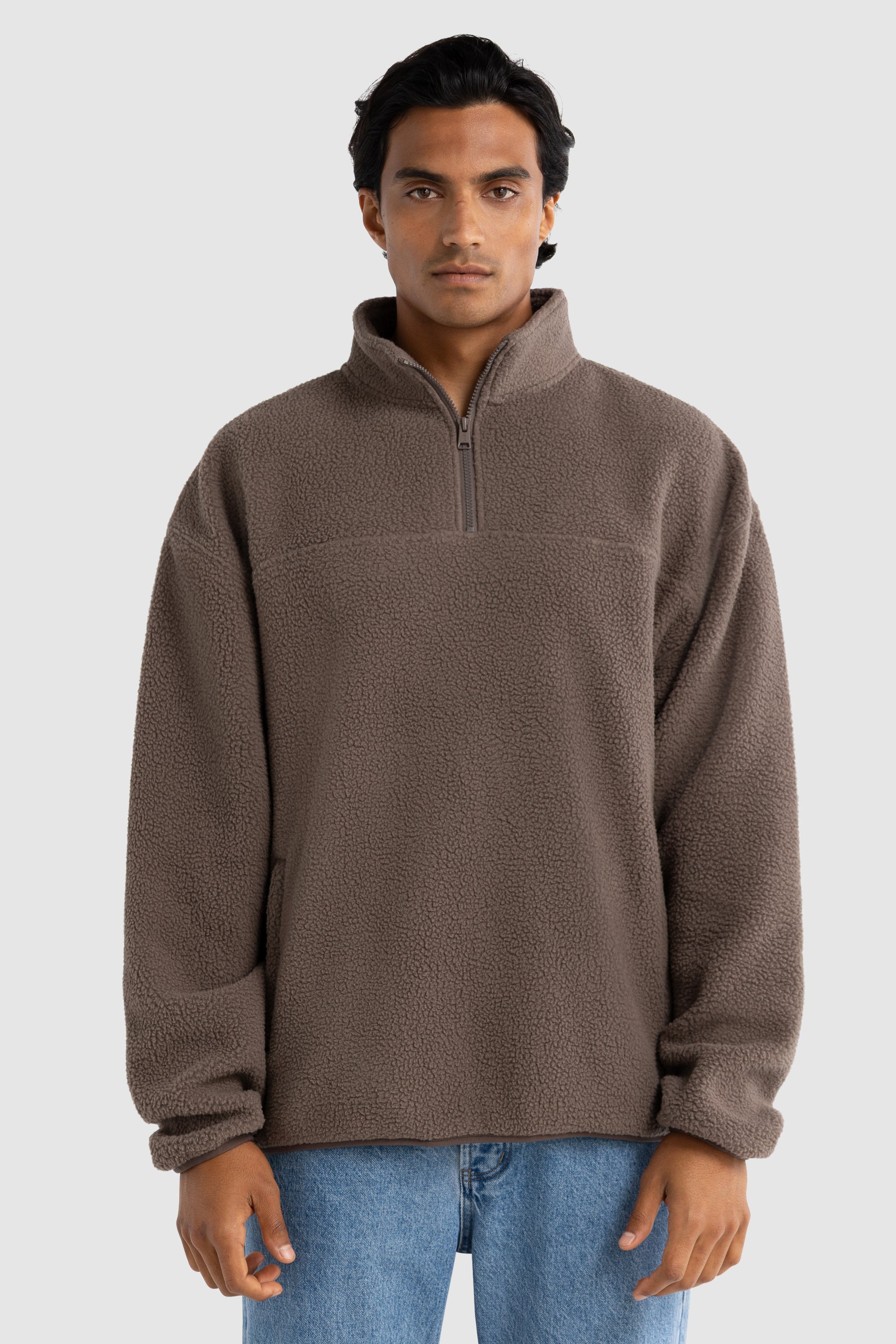 Unisex Sherpa Fleece Quarter Zip Espresso
